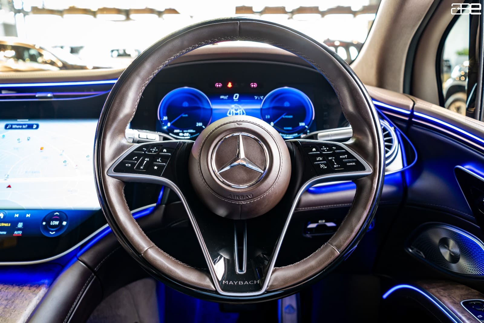 Surface to form The MBUX Hyperscreen. Brilliant OLED technology and The Intuitive Zero-Layer User Interface Meet Status-Defining Details Such as The Maybach Logo and The "MAYBACH" Display Style,